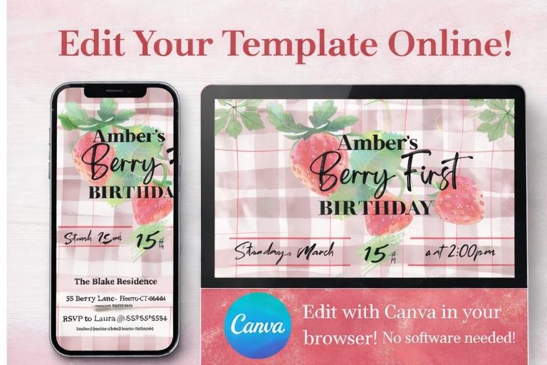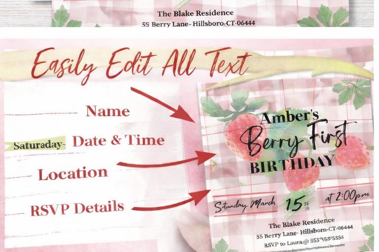 🍓 Simply edit, download, and print or send digitally to your guests.
