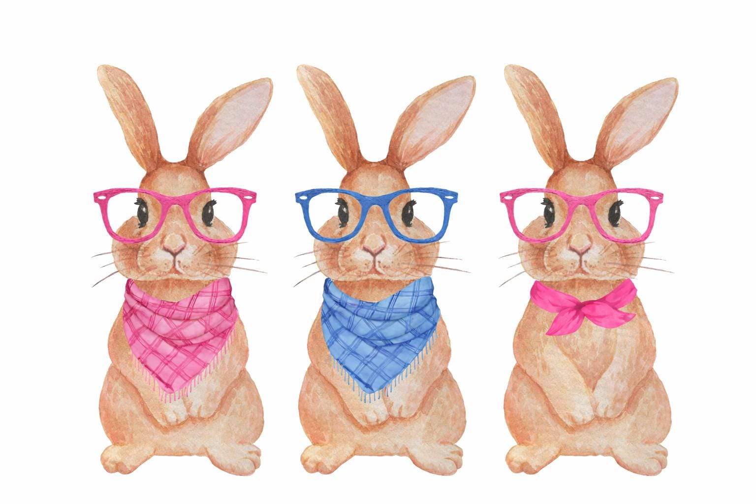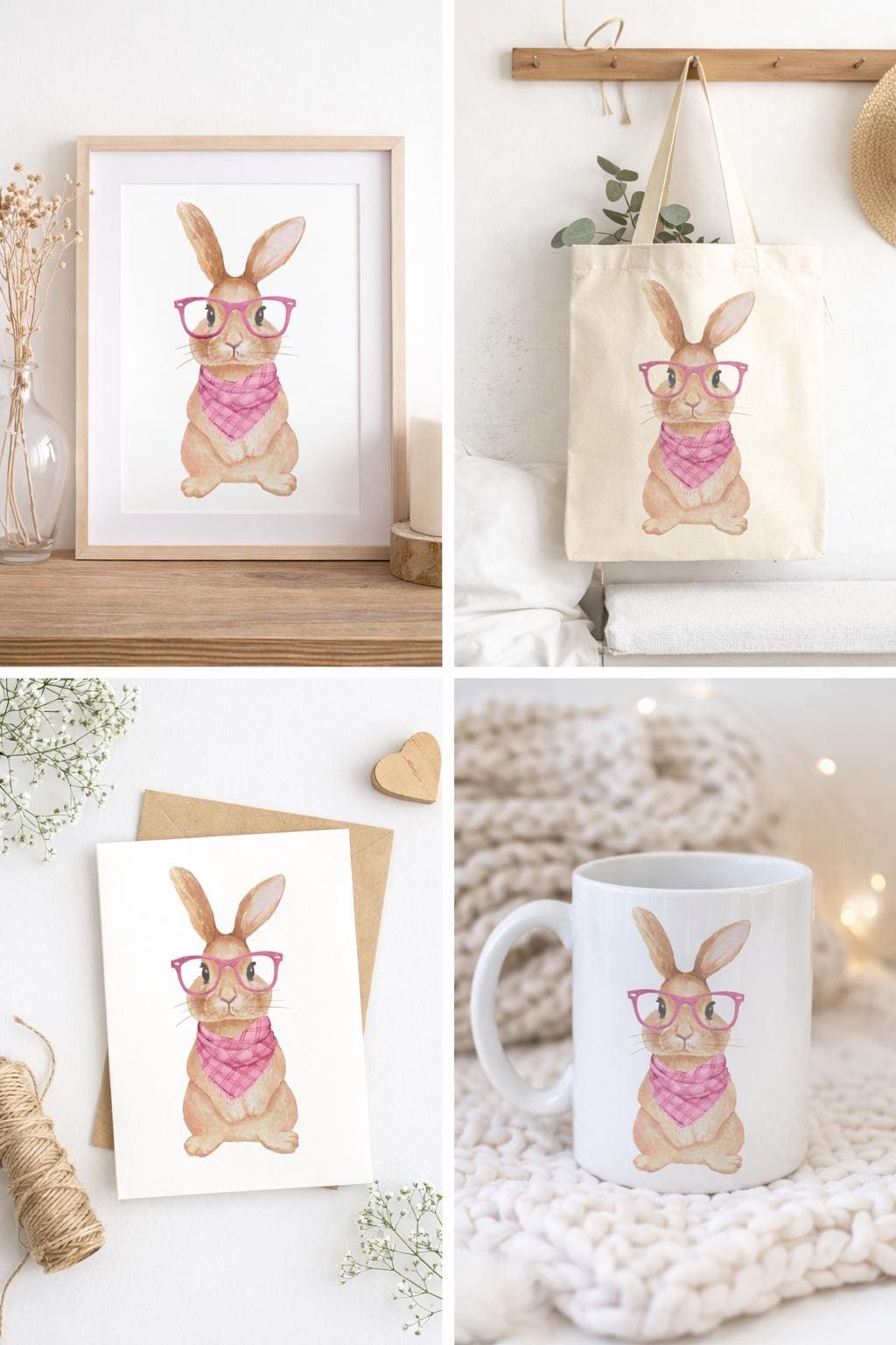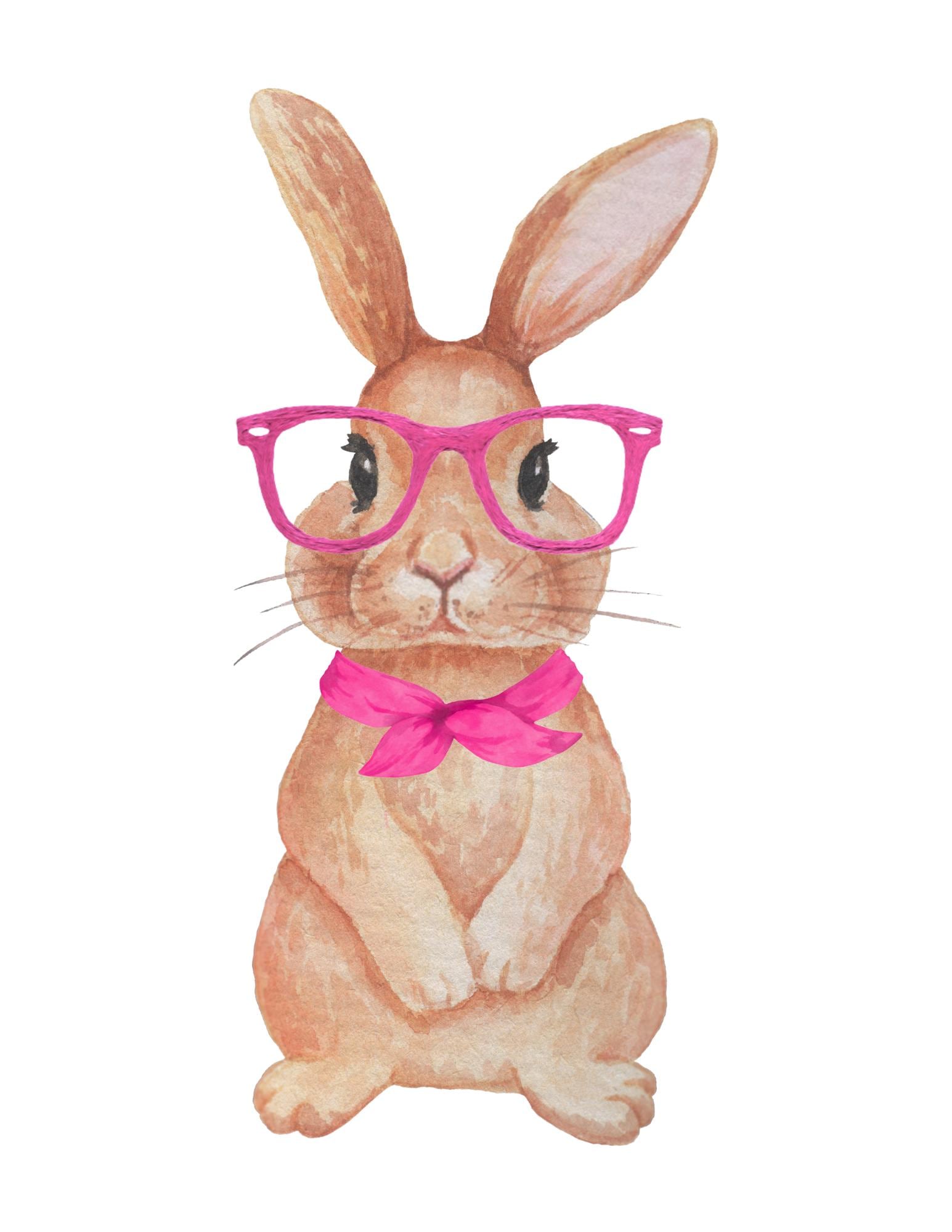 Smart Bunny Digital Download wall art adds instant charm: a watercolor bunny with bright glasses and a pop of playful pink or cool blue, ready to print today.